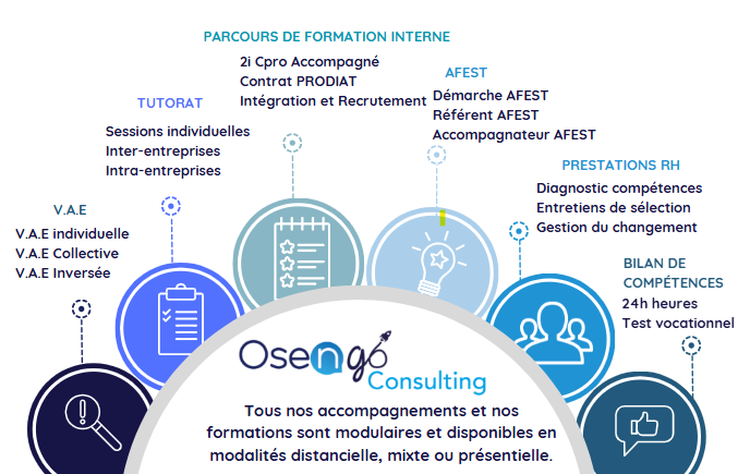 Convaincues que l’on apprend autant en entreprise qu’en centre de formation, les équipes d’Osengo Consulting résument leur mission ainsi :